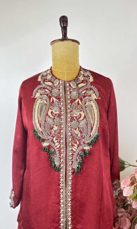 Red colour unstitched suit