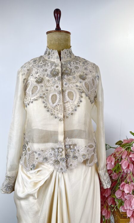 Banarasi tissue lehenga with petit point embroidery