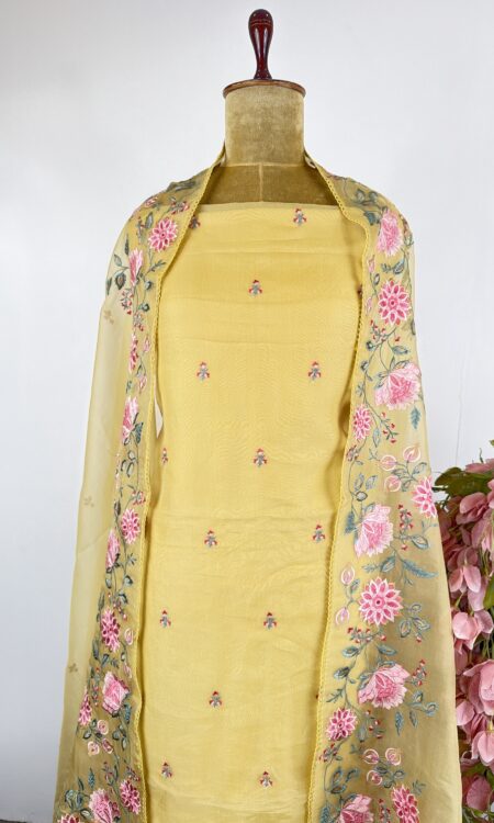 Yellow colour unstitched suit
