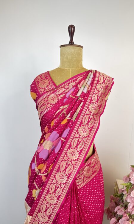 Pink colour bandhani saree
