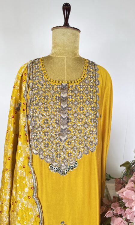 Yellow colour semi stitched suit Original price was: ₹29,500.00.Current price is: ₹24,500.00.