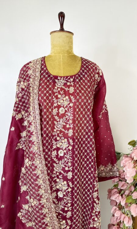 Maroon colour welvet semi stitched suit Original price was: ₹43,799.00.Current price is: ₹35,850.00.