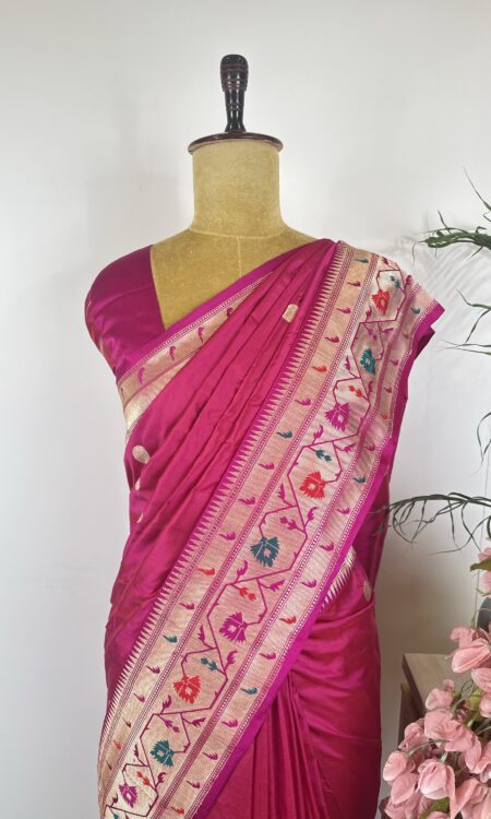 Pink colour raw mango saree with paithani concept border ₹12,500.00click here to know all about sizings.⚡