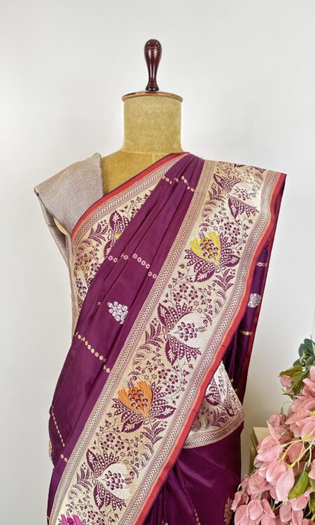 Wine colour Banarasi saree