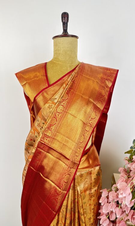 Gold and red Kanchi saree