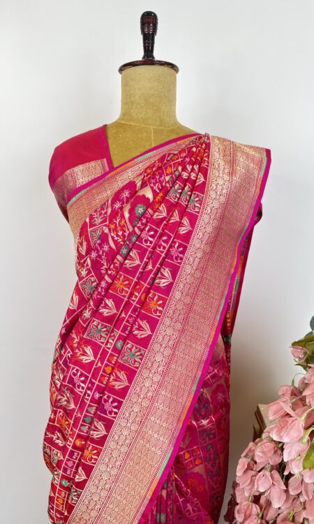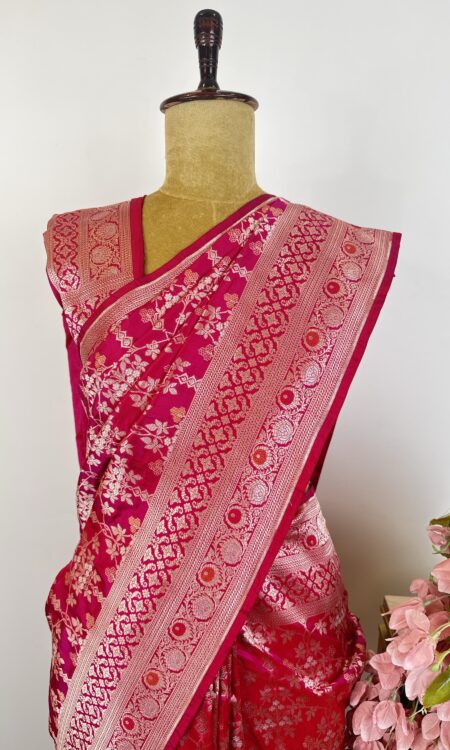 Pink and red (dual shade)banarsi silk saree