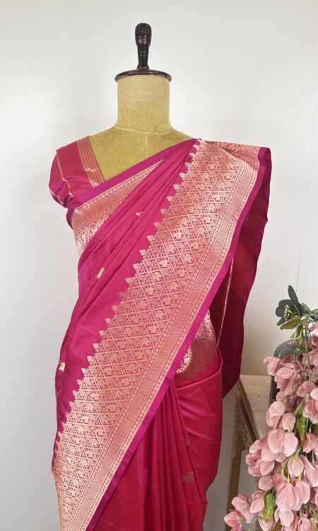 Hot pink colour Banarasi silk saree