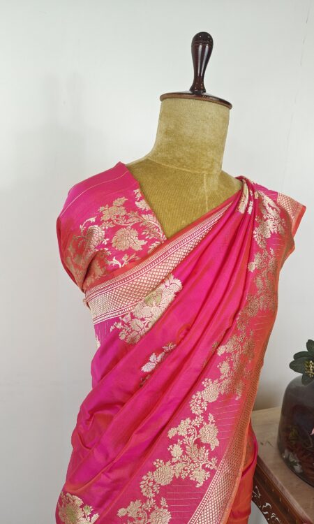 Pink and red (dual shade)banarsi silk saree