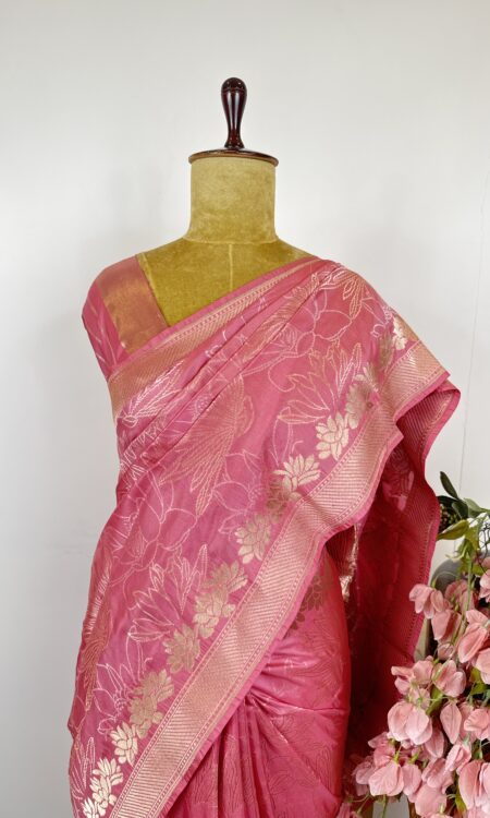 Pink and red (dual shade)banarsi silk saree