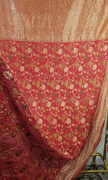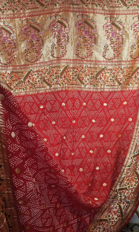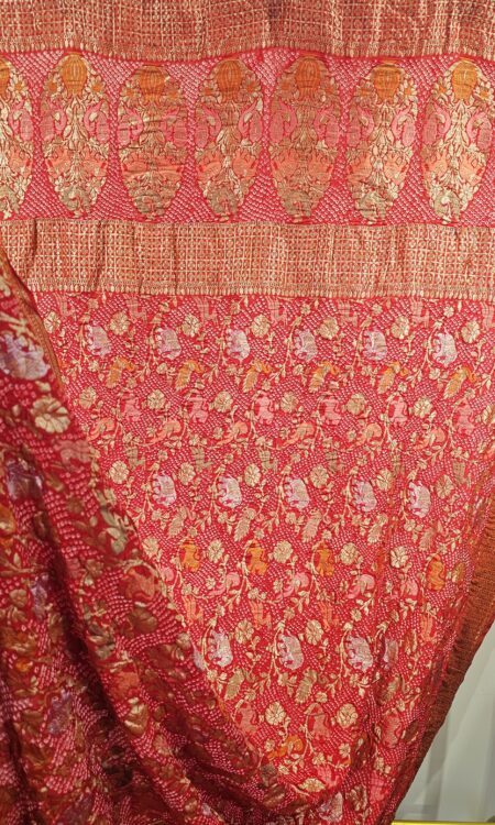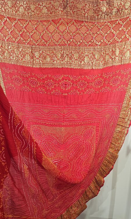 Red Bandhani Dupatta with zari weaving (odhana)