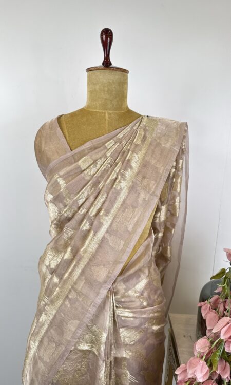 Silver colour Banarasi tissue saree