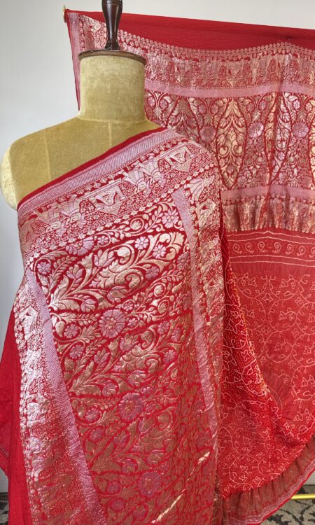 Red Georgette Bandhani sareeclick here to know all about sizings.⚡