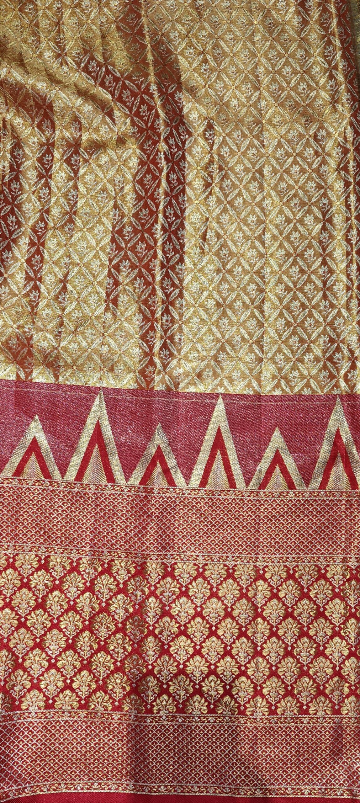 Gold color Kanchi saree with red border