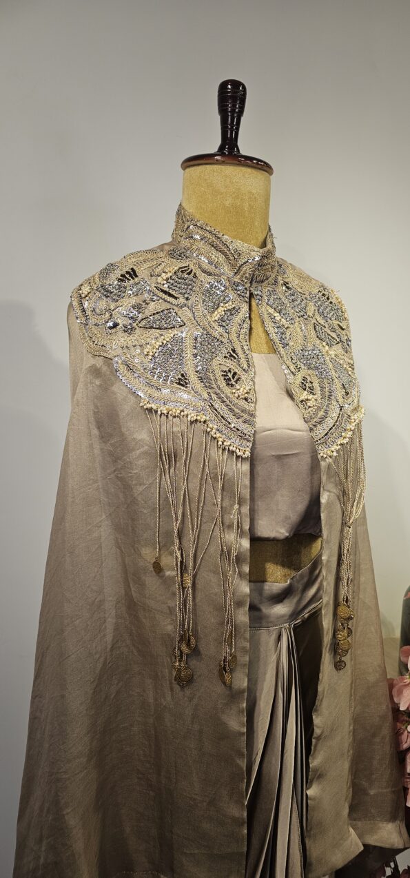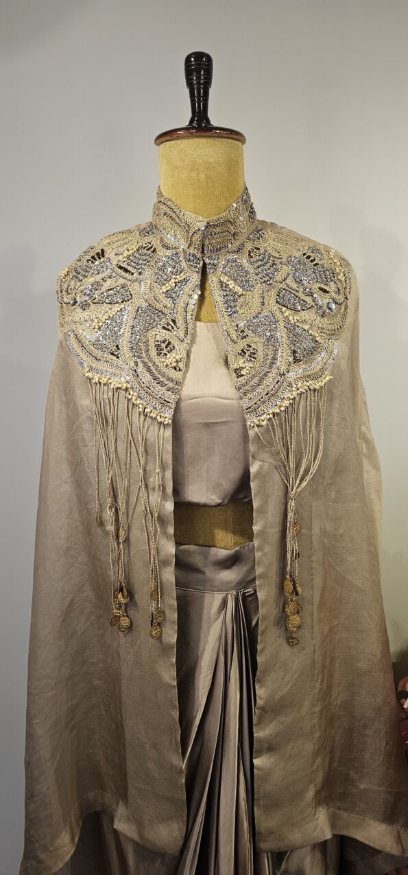 Grey colour drape skirt with cape
