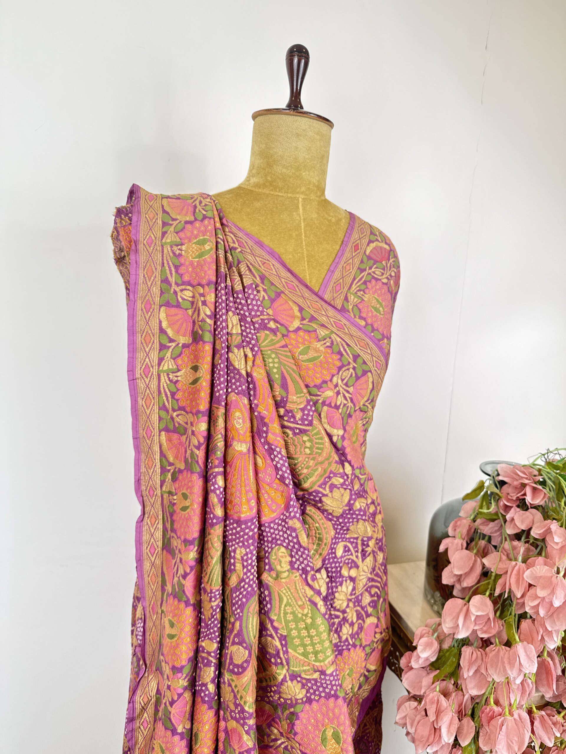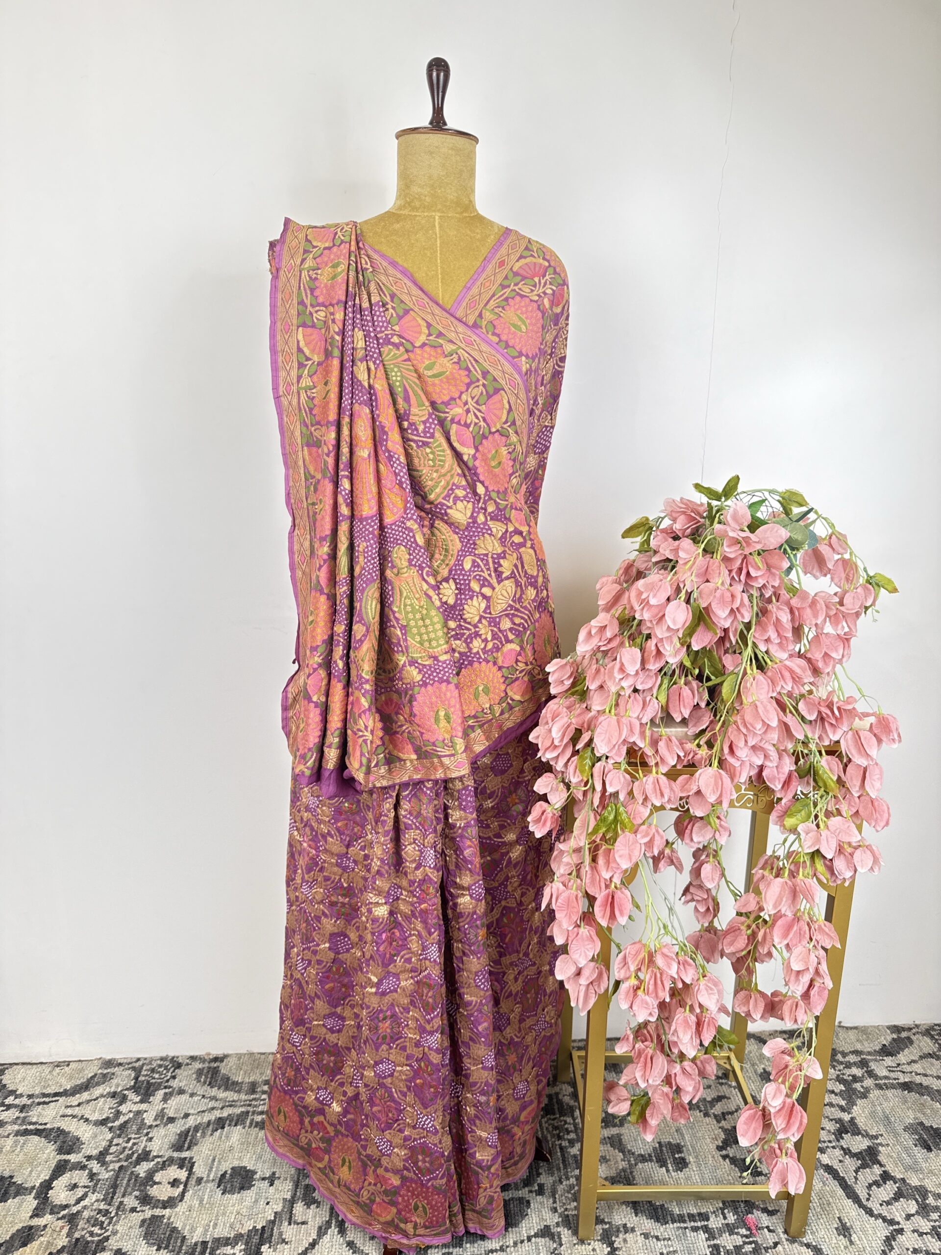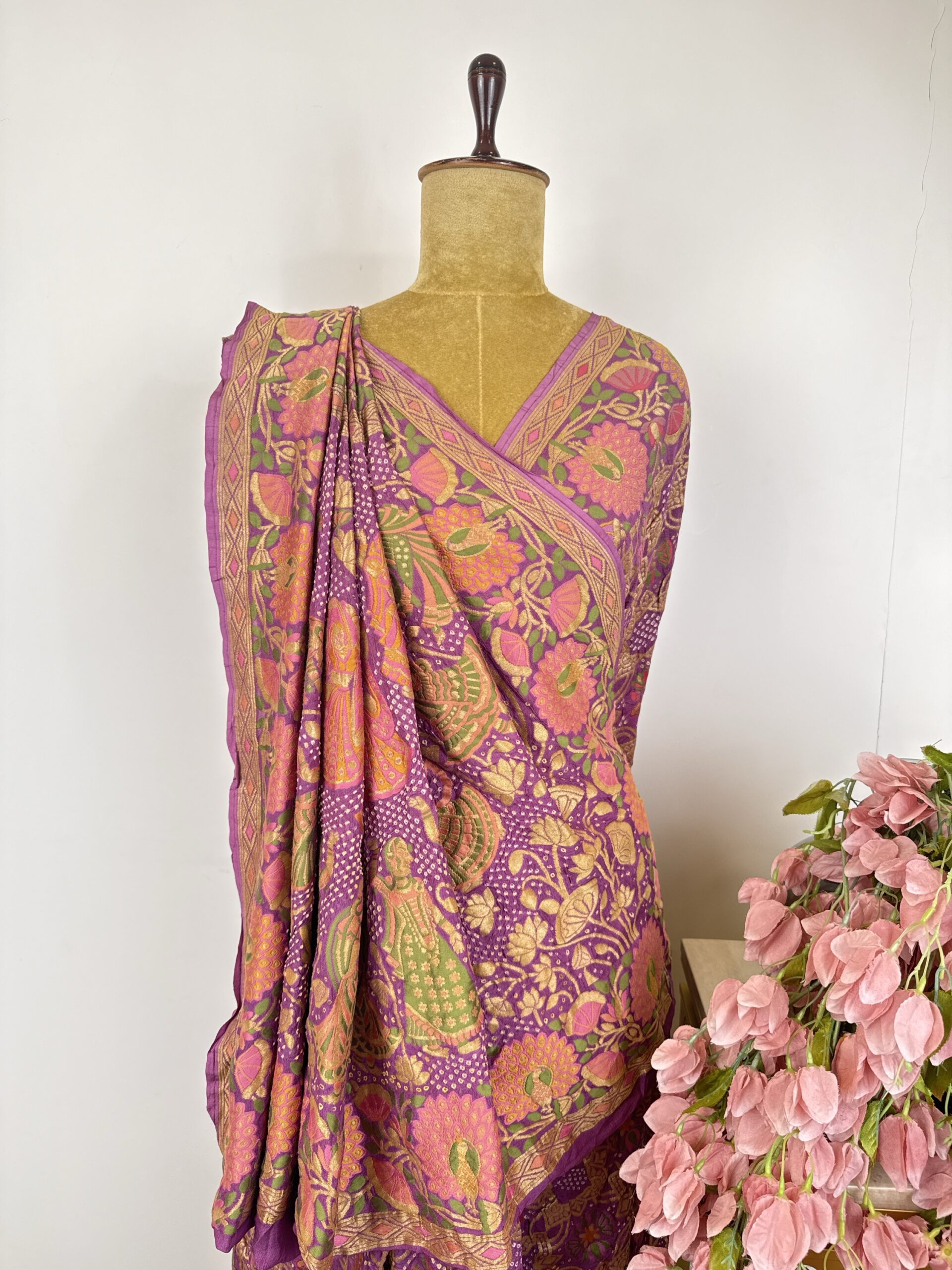 Lavender colour Krishna ji bandhani saree