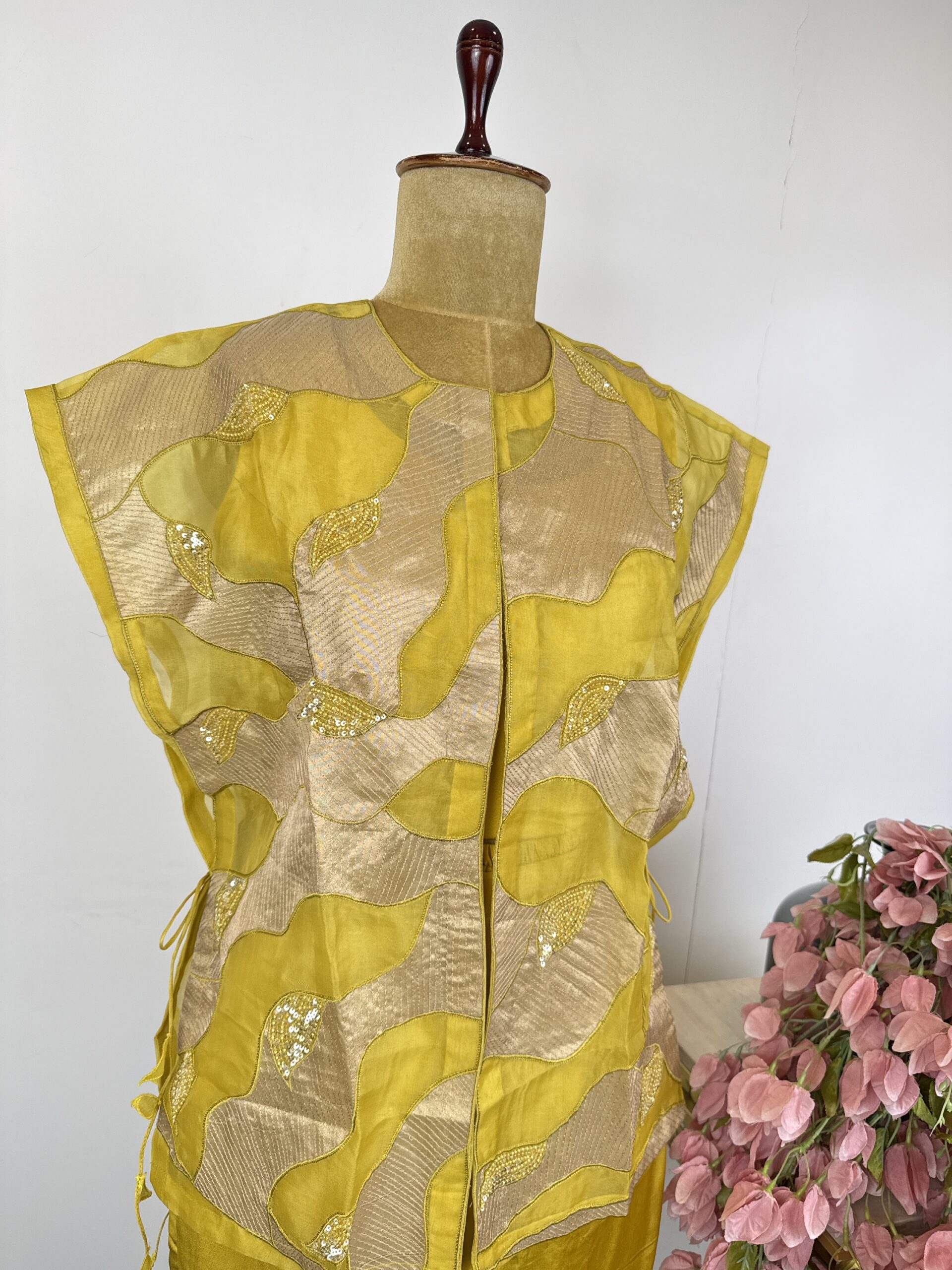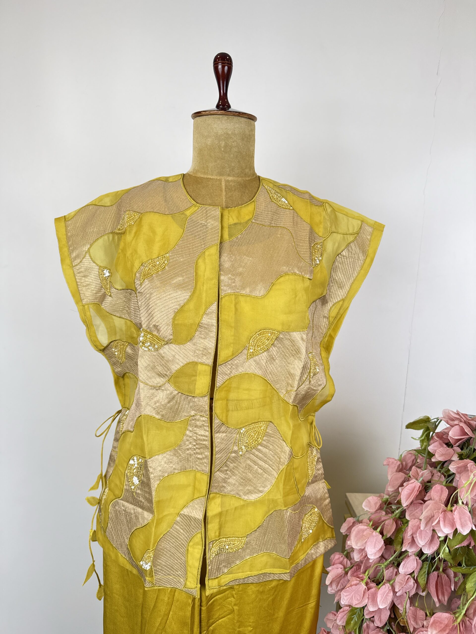 Light green colour 3 piece indo western suit with flared pants,