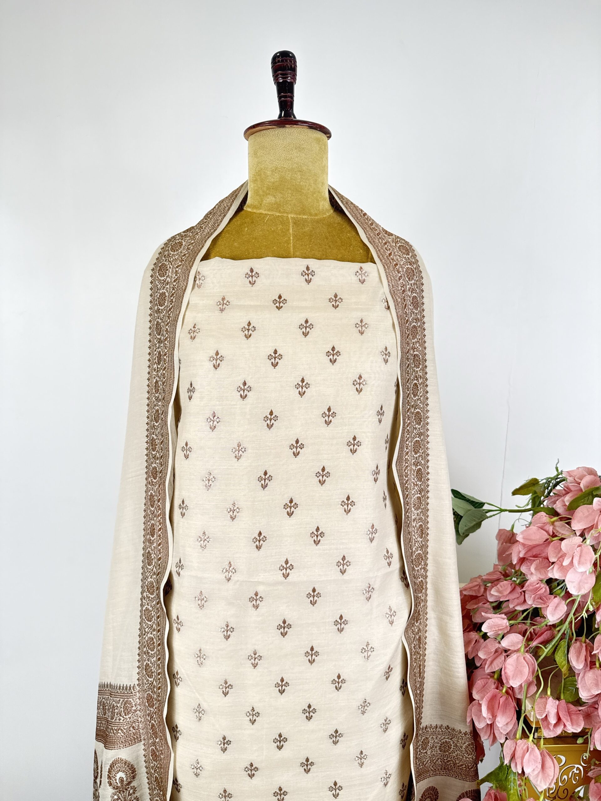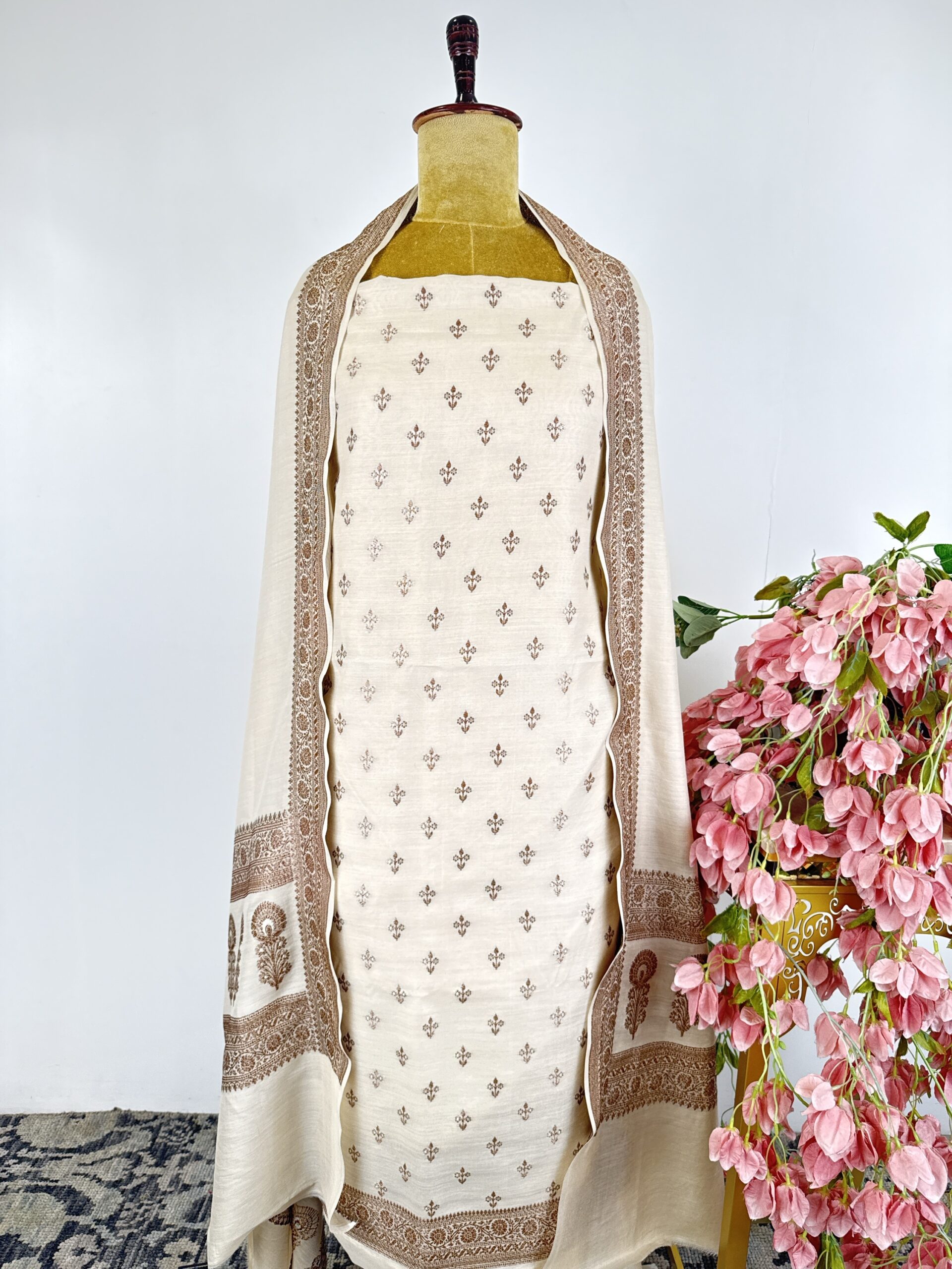 Off white colour Munga Silk unstitched suit