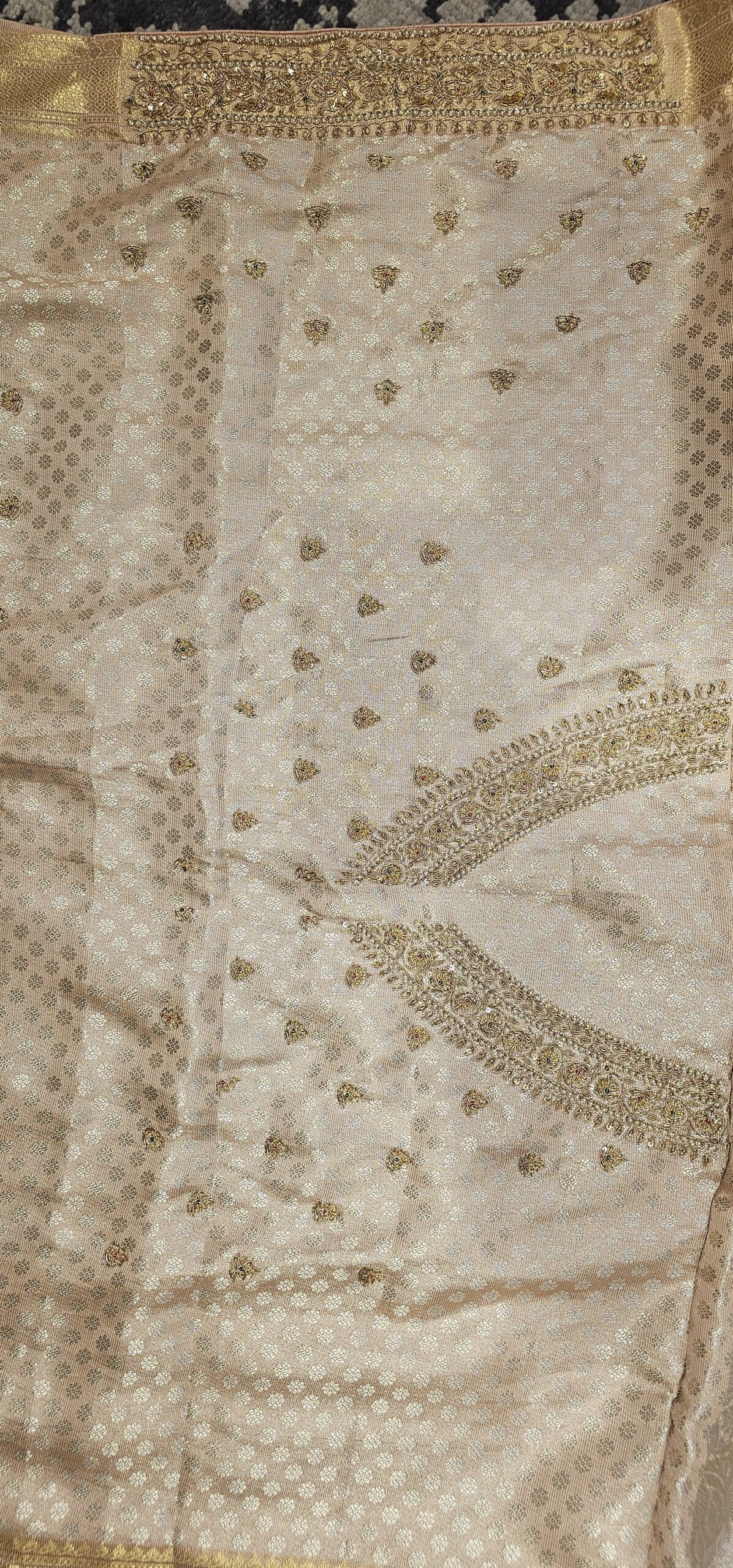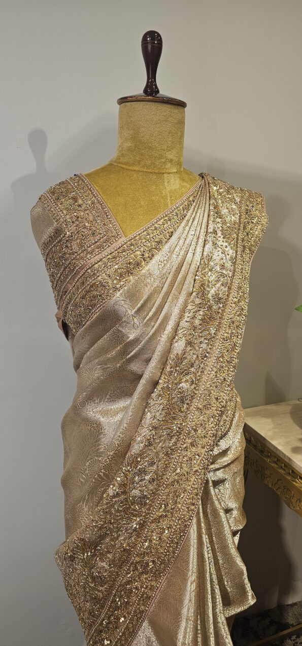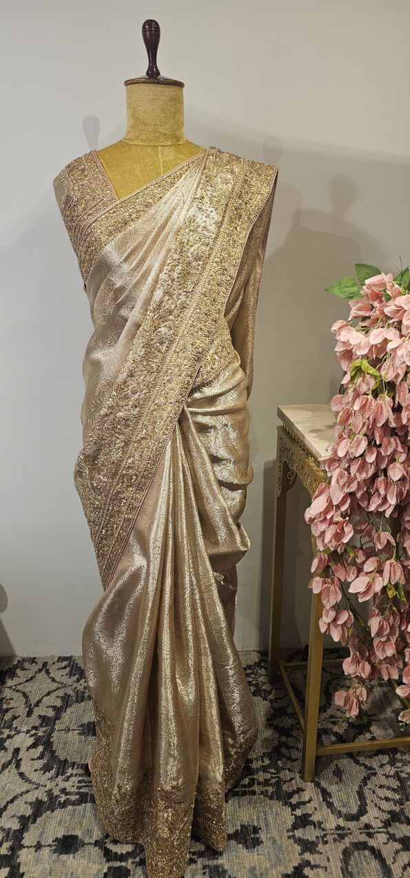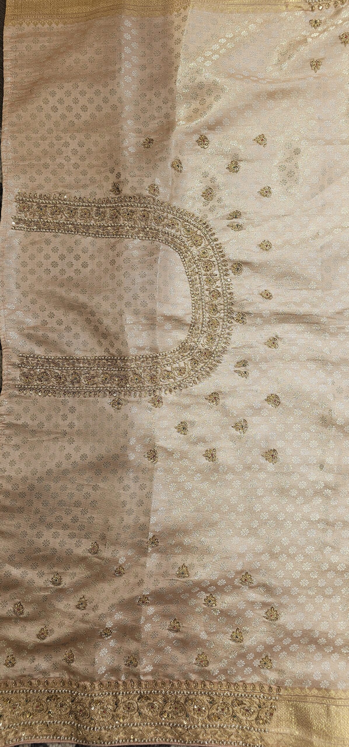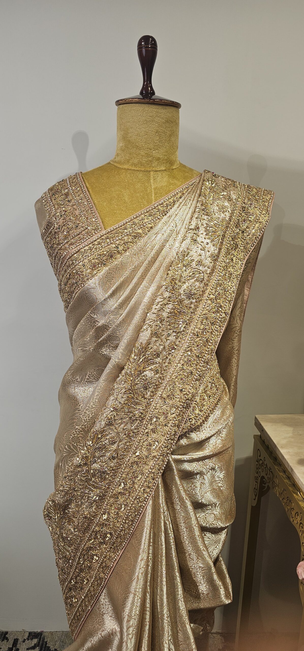 Pastel pink colour banasari tissue saree with beautiful hand done zardosi embroidery all over saree