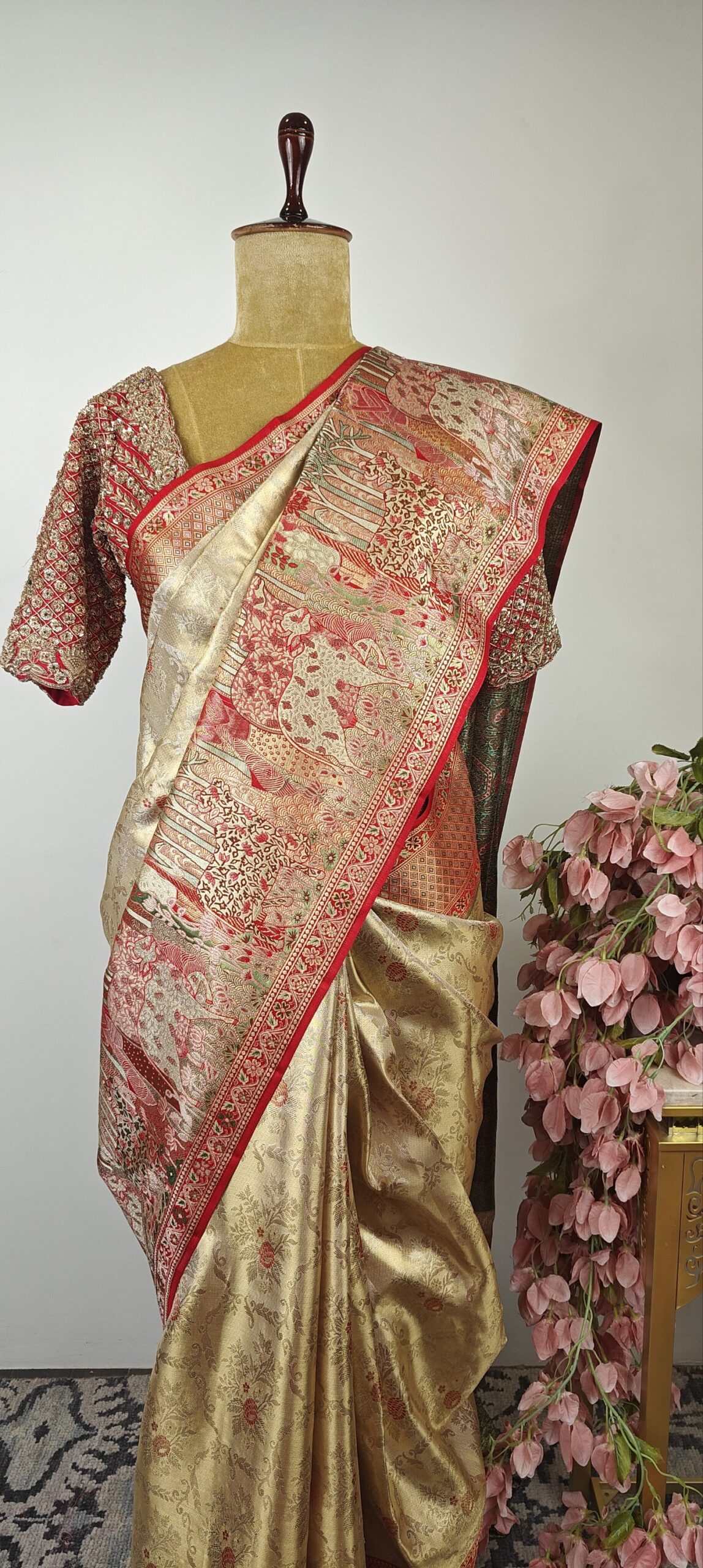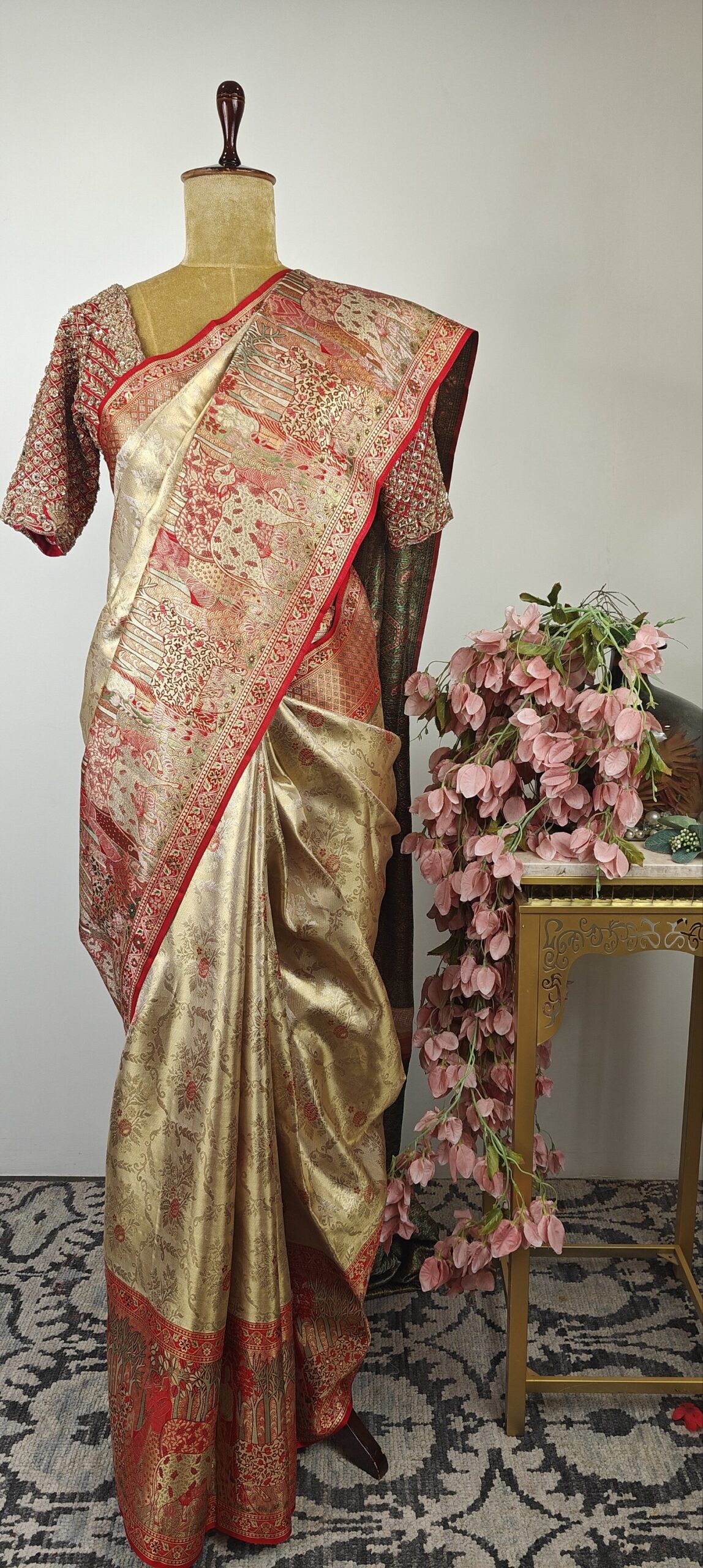 • Pichwai concept beige Kanchi saree