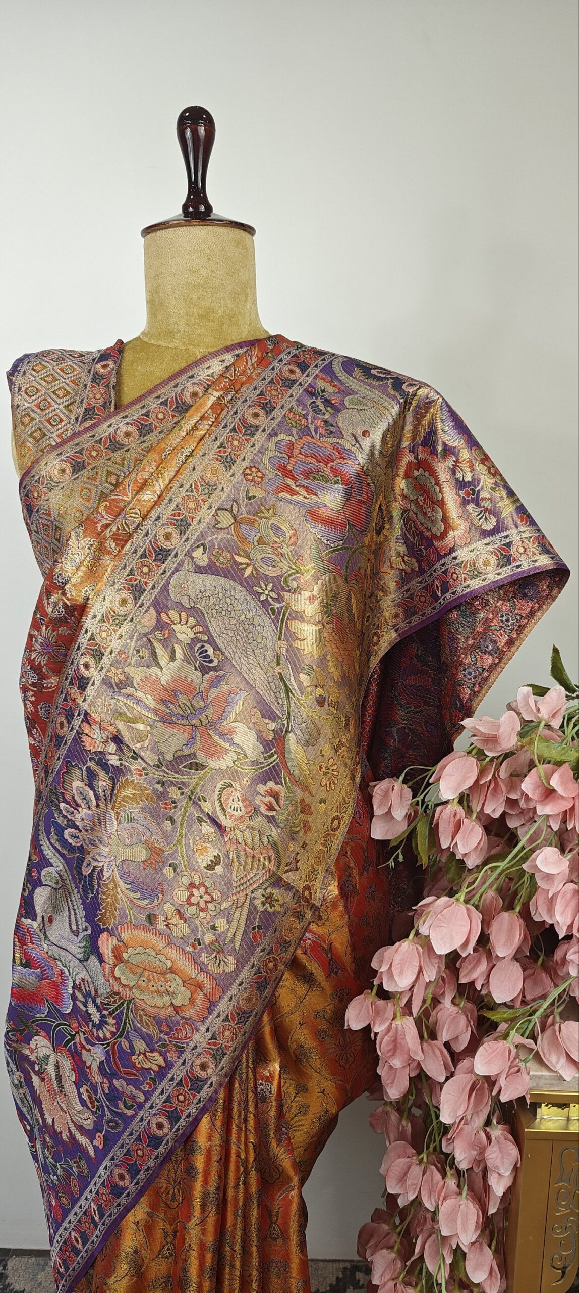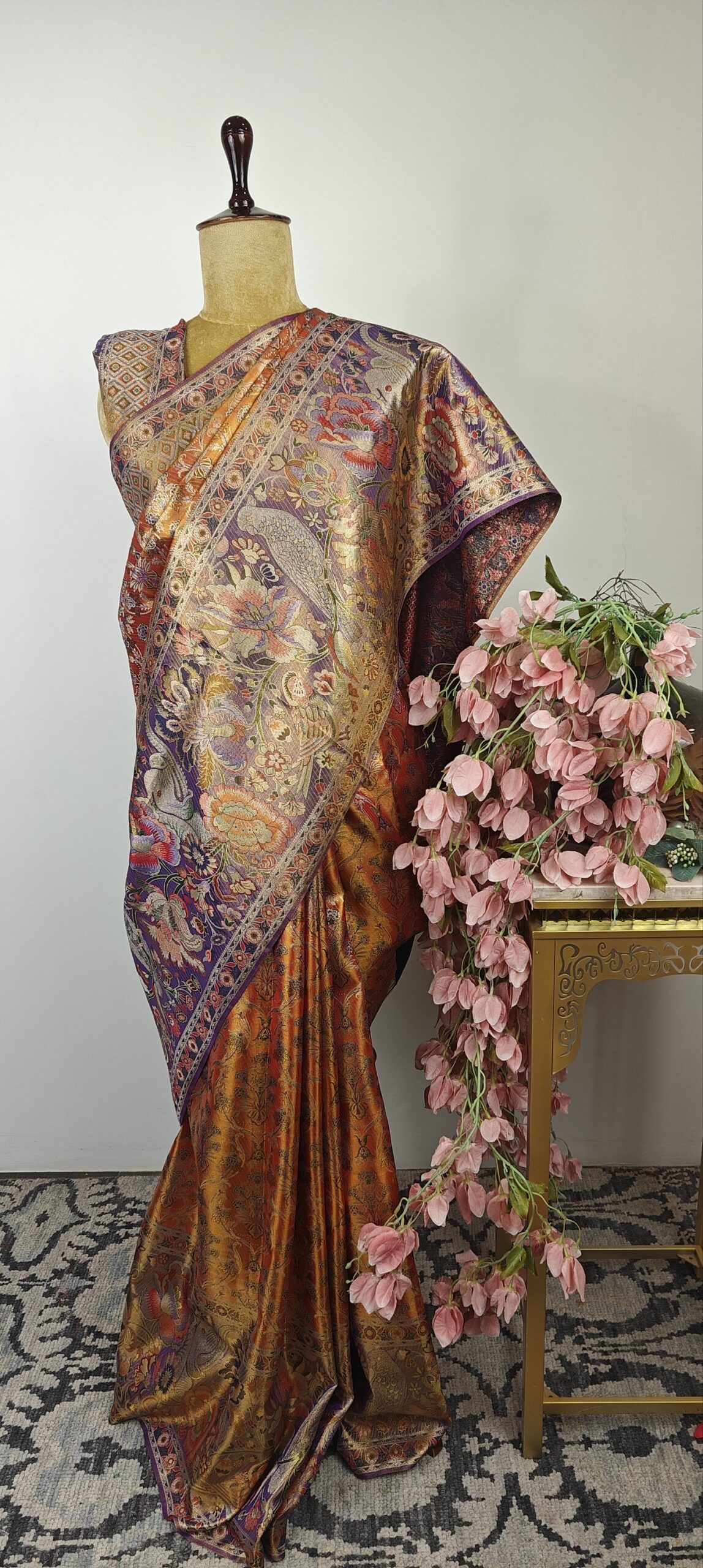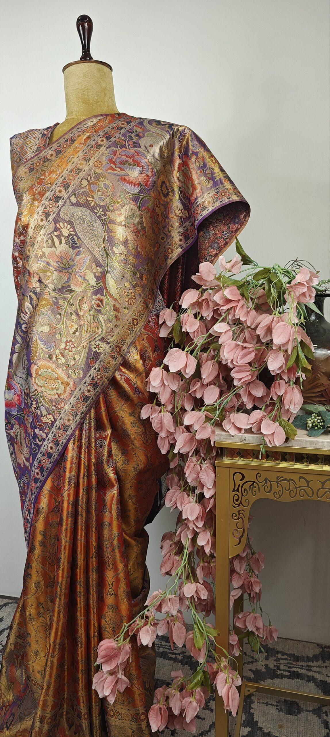 • Prakriti Darbar concept rusted gold Kanchi saree