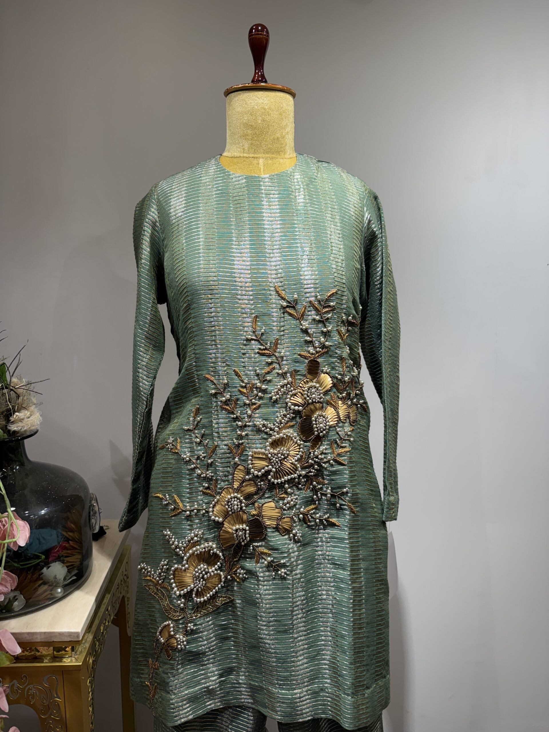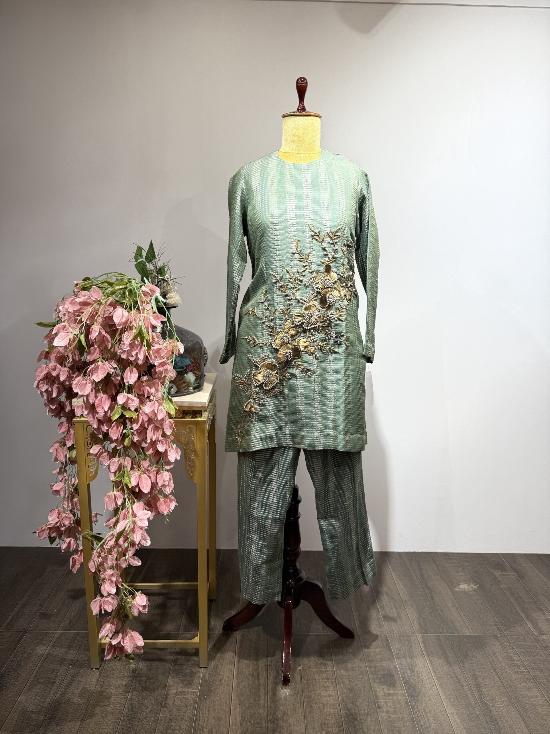 • Mint Green Western Co-ord Set with Unique  Work Top