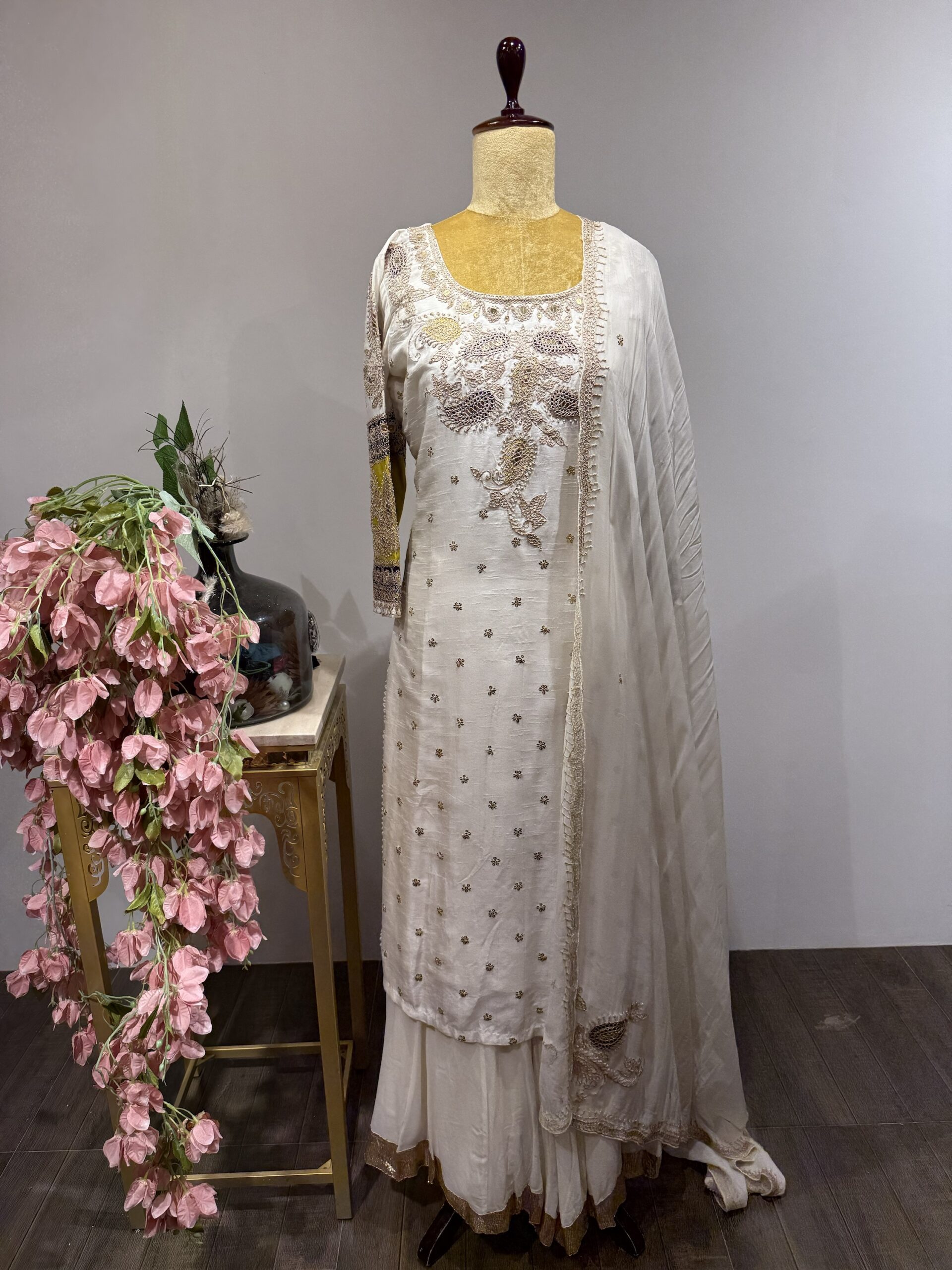 Timeless Whites – Sharara Set with Long-Length Top & Volume Flare