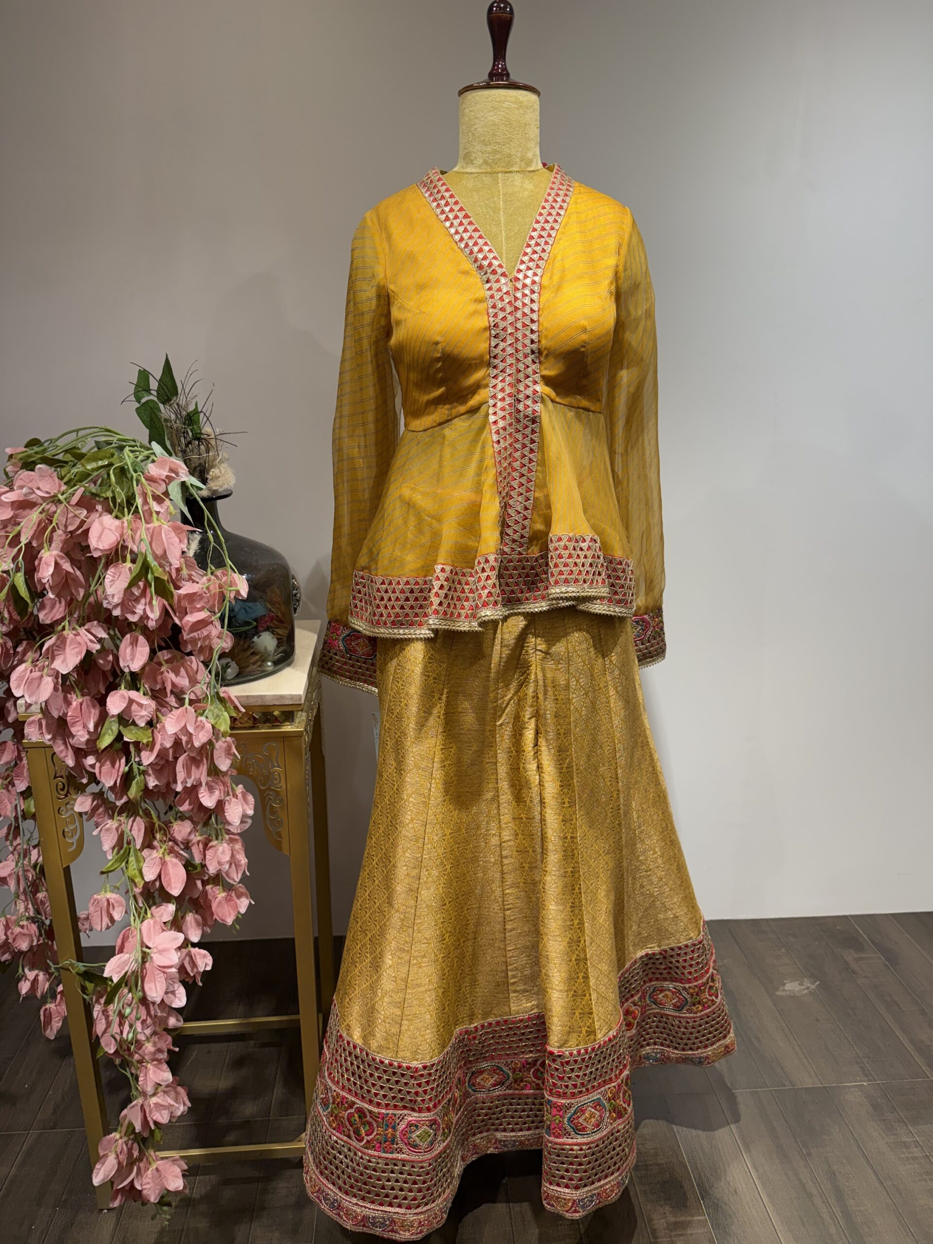 Mustard Peplum Sharara Set with Flowing Silhouette