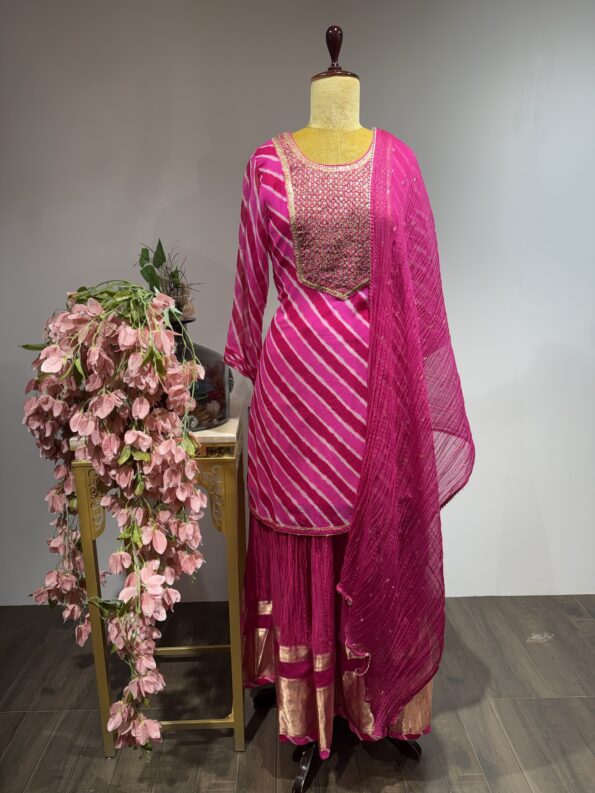 Leheria Blush: Pink Kurti Ensemble with Skirt & Dupatta