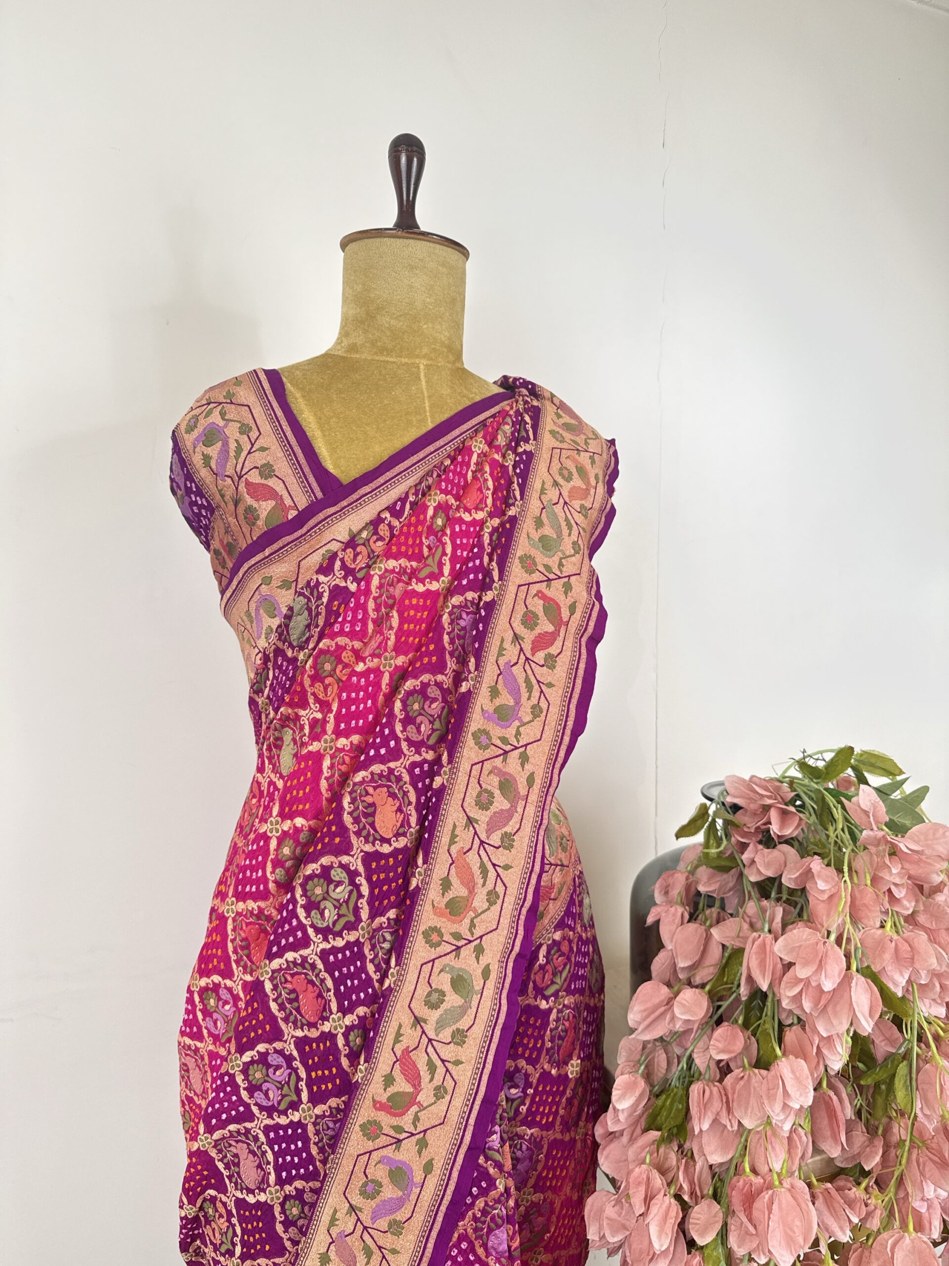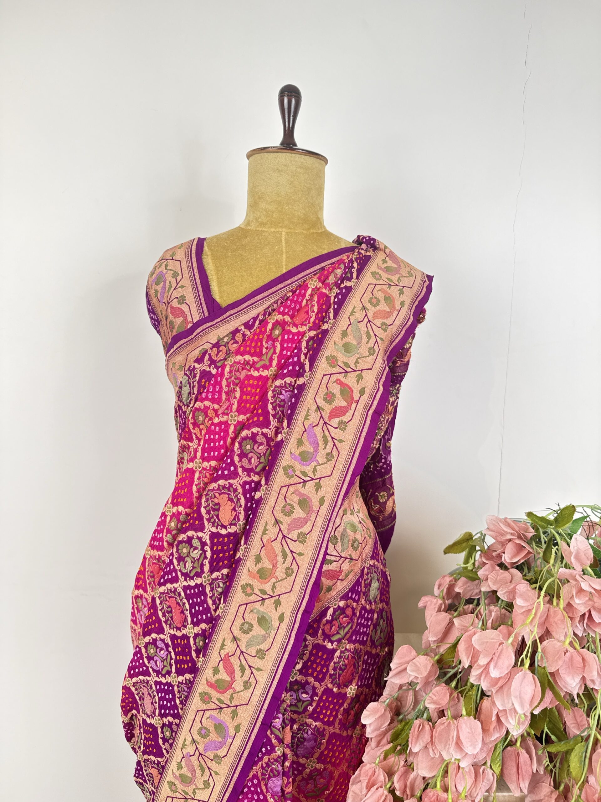 Purple to pink Bandhani saree