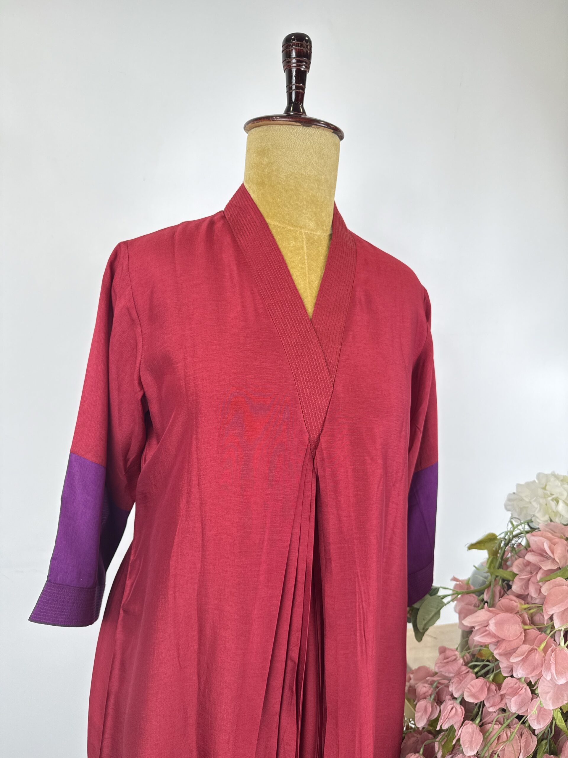 Red and purple 2D kurta with falling silk
