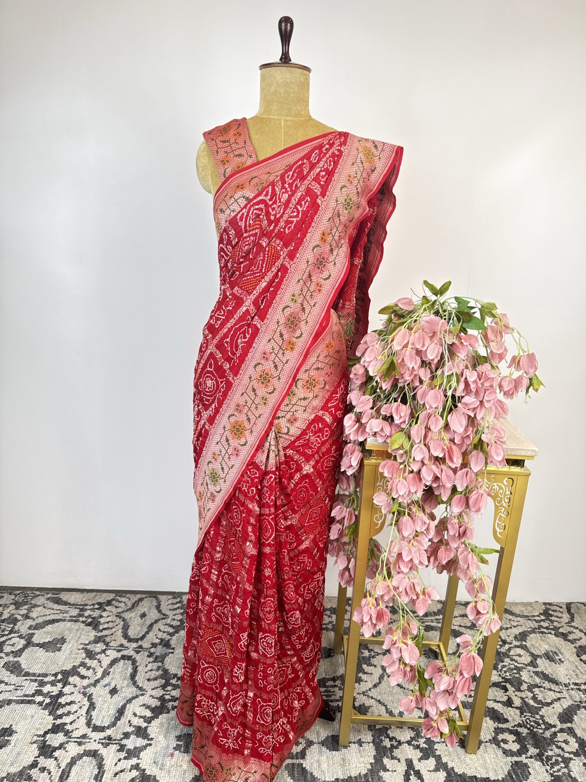 Red colour gharchola bandhani saree