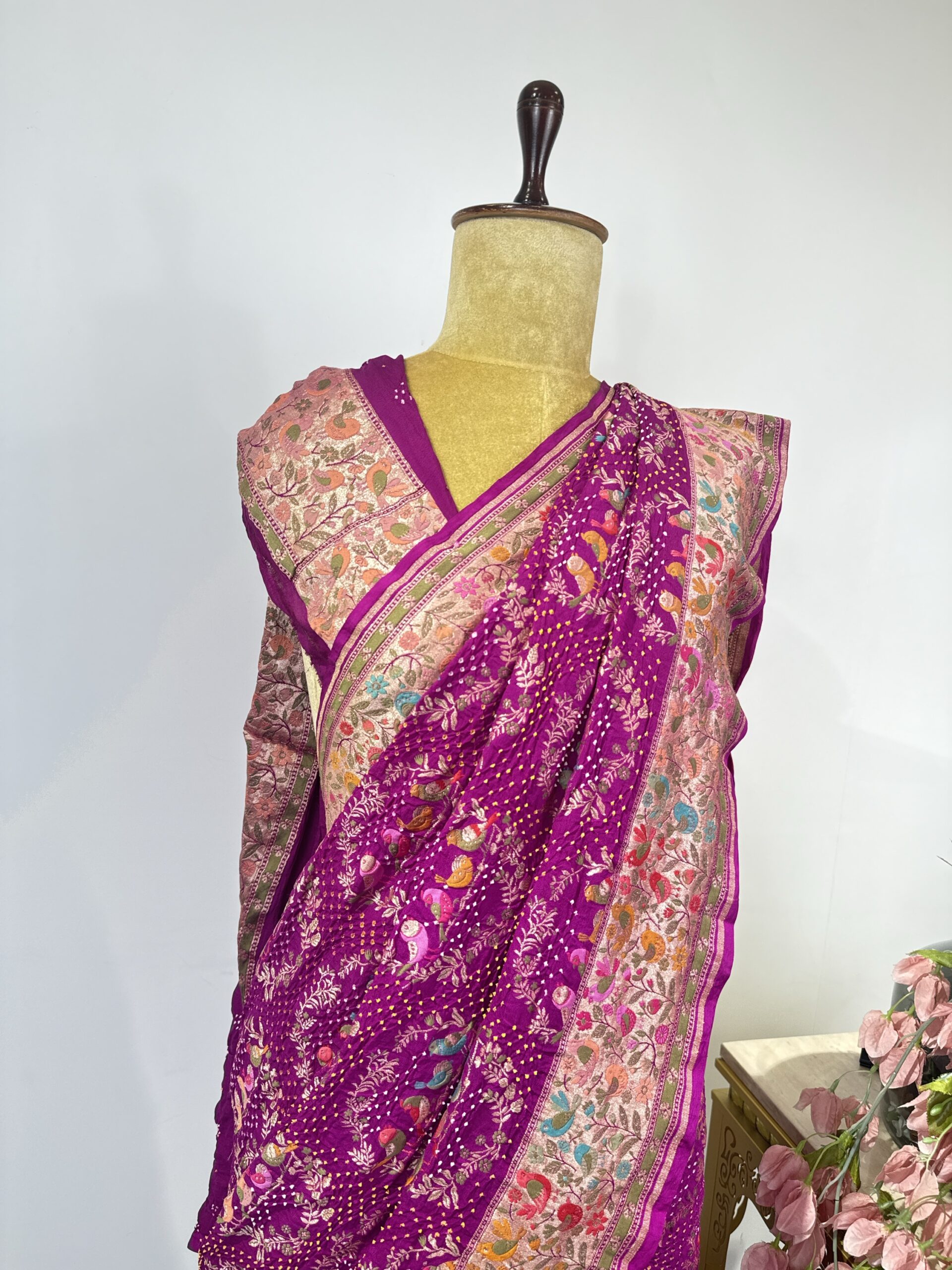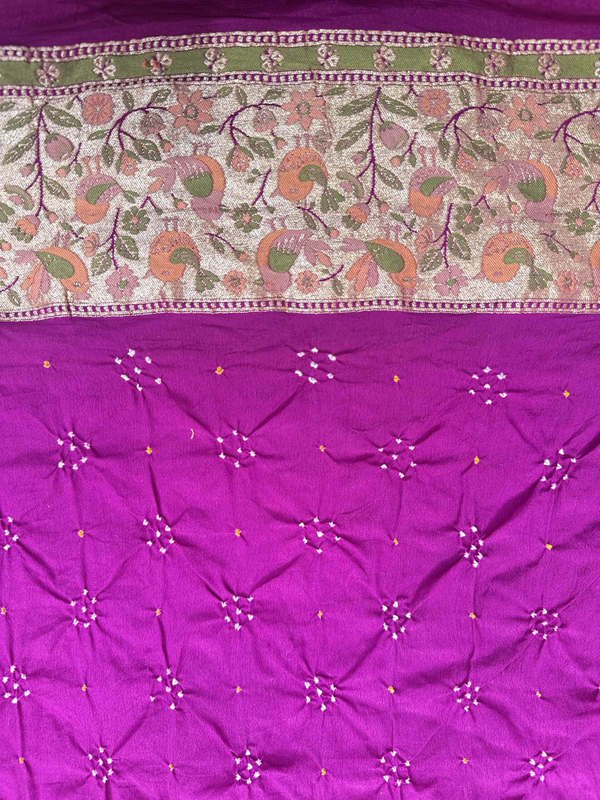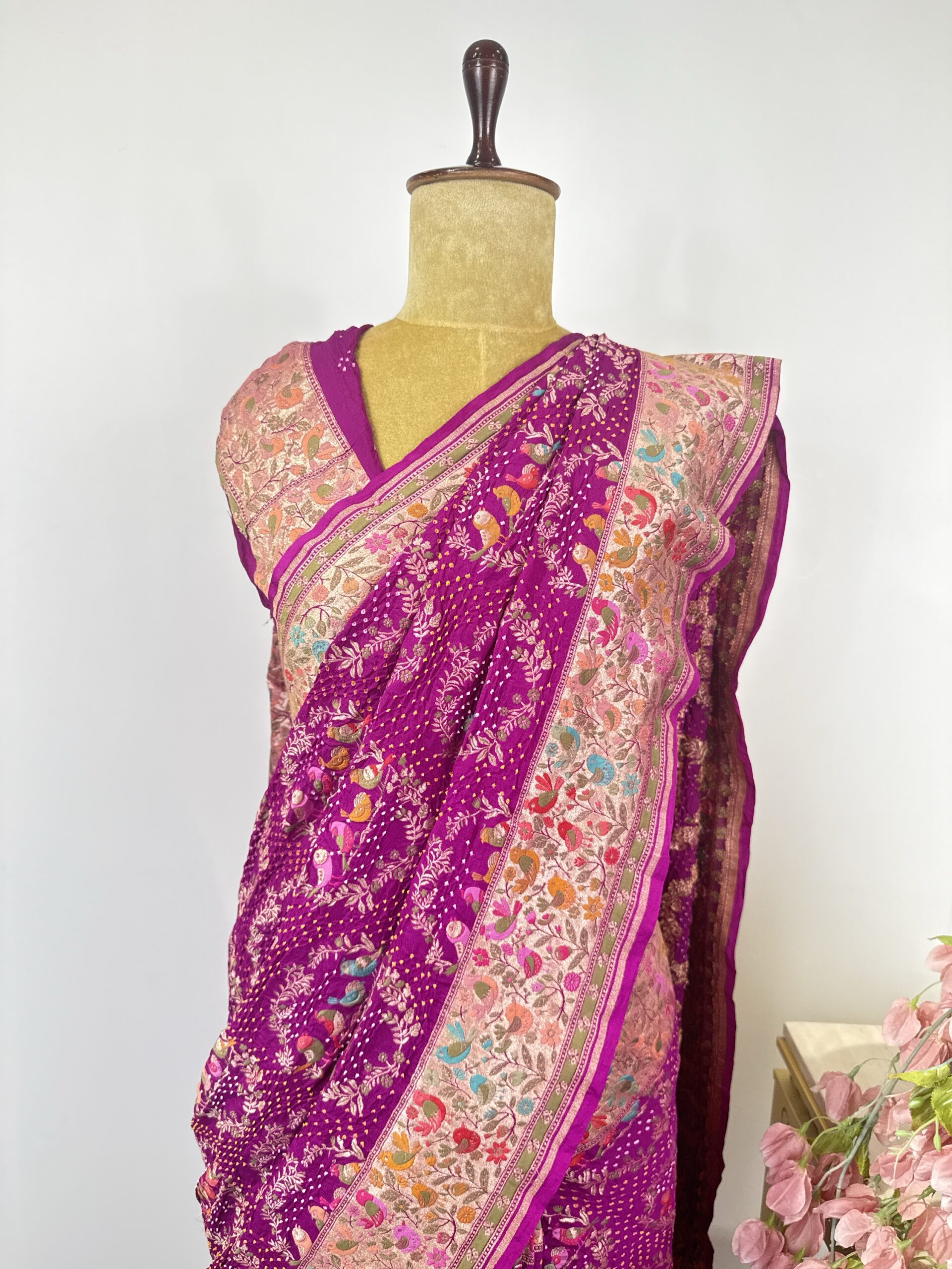 Royal Magenta Bandhani Saree with Heritage Floral Border