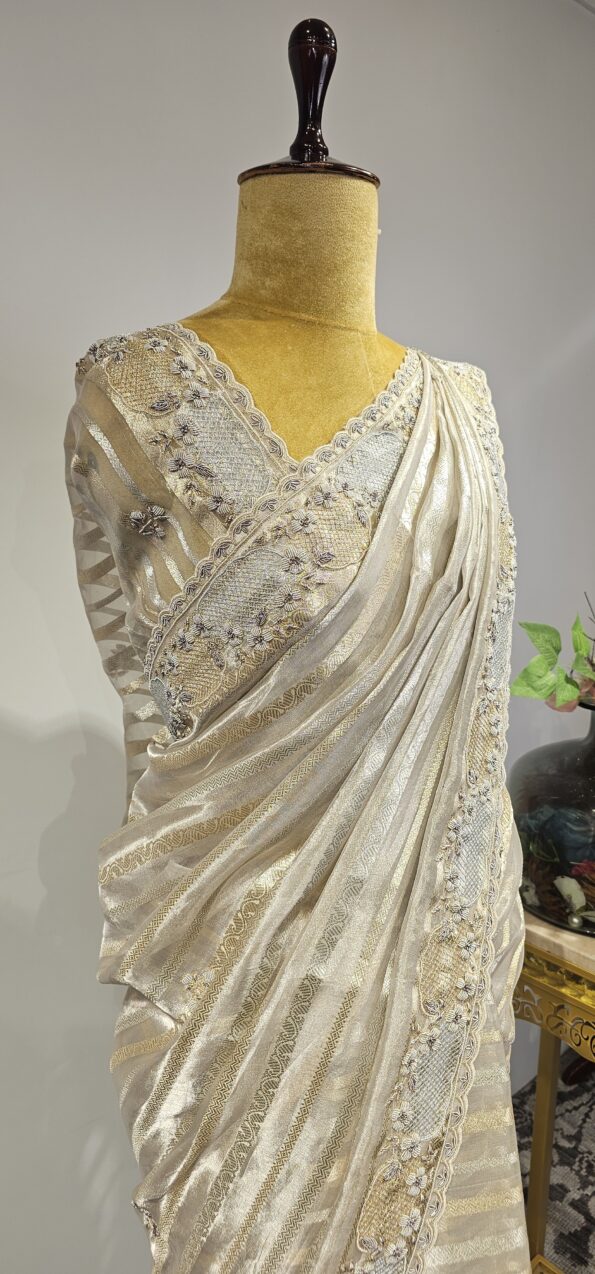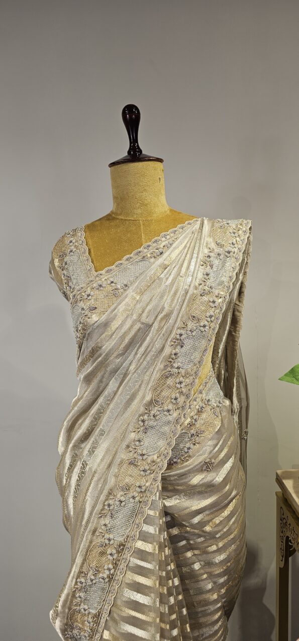 Silver tissue organza saree