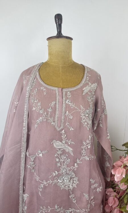 Tissue kaftan with hand done pearl and sequence embroidery with unstitched pants