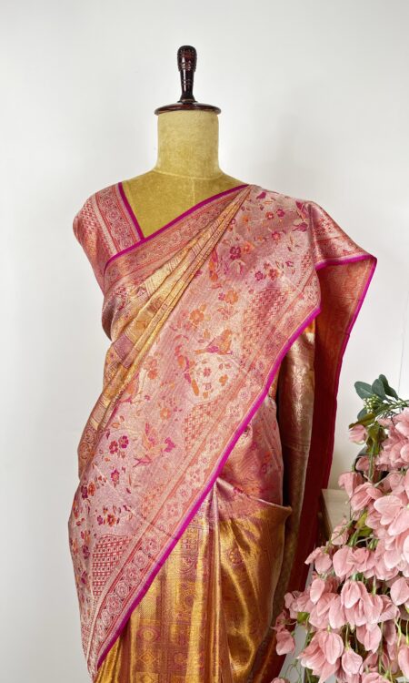 Onion pink colour Kanchi saree