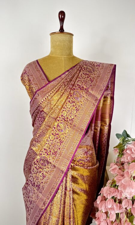 Purple and gold colour kanchi saree