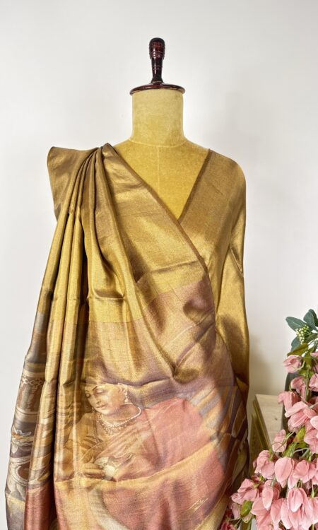 Gold Kanchi tissue saree with ravi varma Shakuntala concept