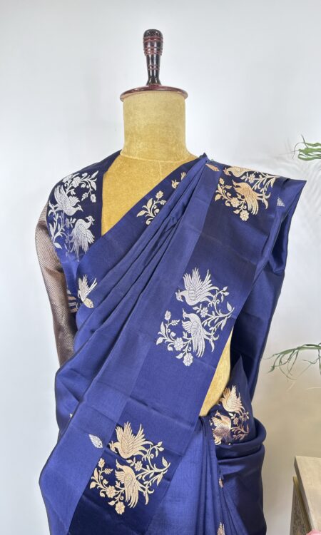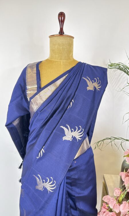 Blue Multi coloured tussar silk sareeclick here to know all about sizings.⚡