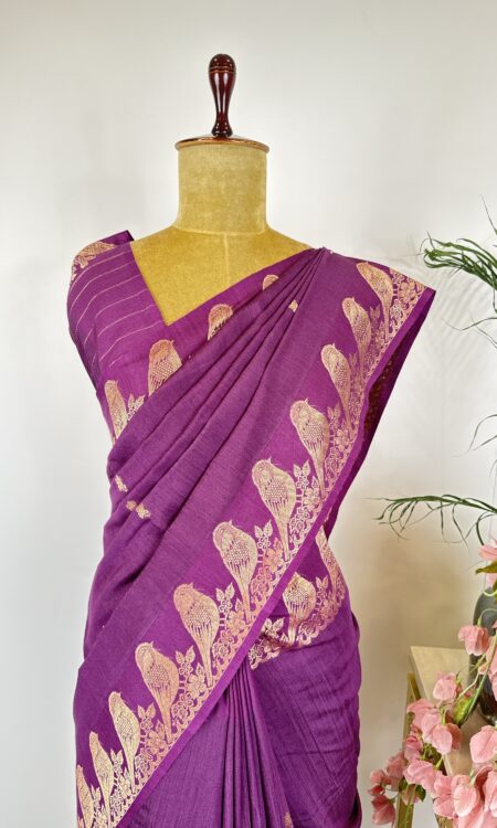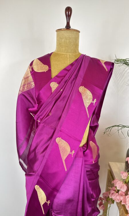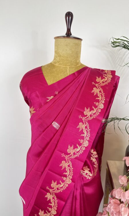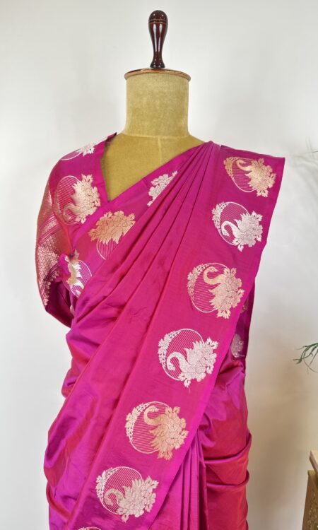 Pink colour raw mango saree with paithani concept border ₹12,500.00click here to know all about sizings.⚡