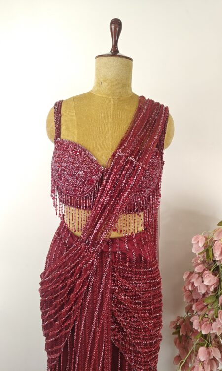 Deep crimson red drape saree